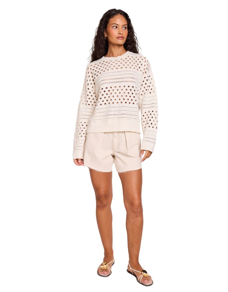 Brodie Mixed Pointelle Crew White